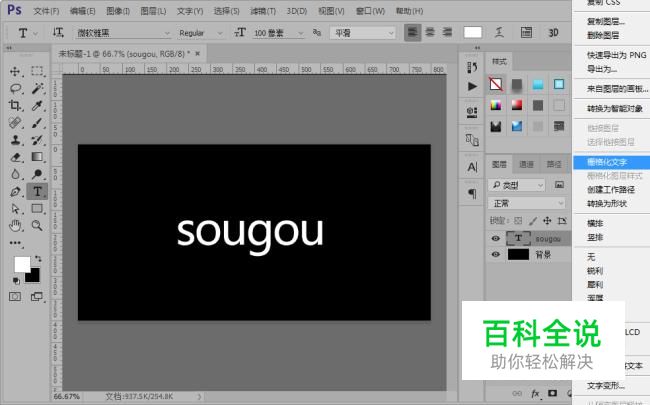 把背景填充为黑色,选择文字工具,输入白色文字,然后栅格化文字图层。