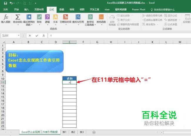 观察公式可以看到,表1到表3中求和的每个单元格地址都是相同的,比如第一个单元格都是E11单元格
