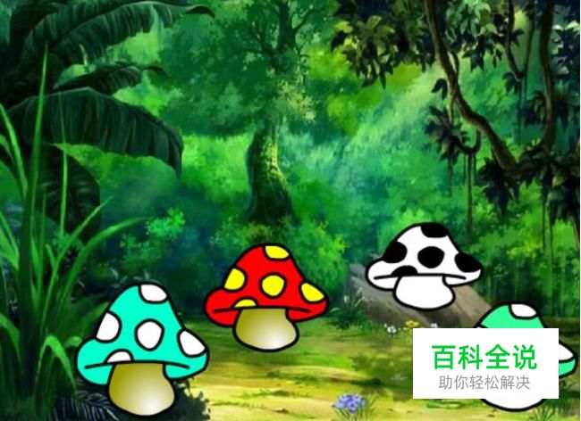 更改蘑菇的填充颜色 全选舞台上的蘑菇图形,复制粘贴出3个蘑菇图形,然后使用【颜料桶工具】填充蘑菇的填充颜色,每个蘑菇分别填充出不同的颜色。