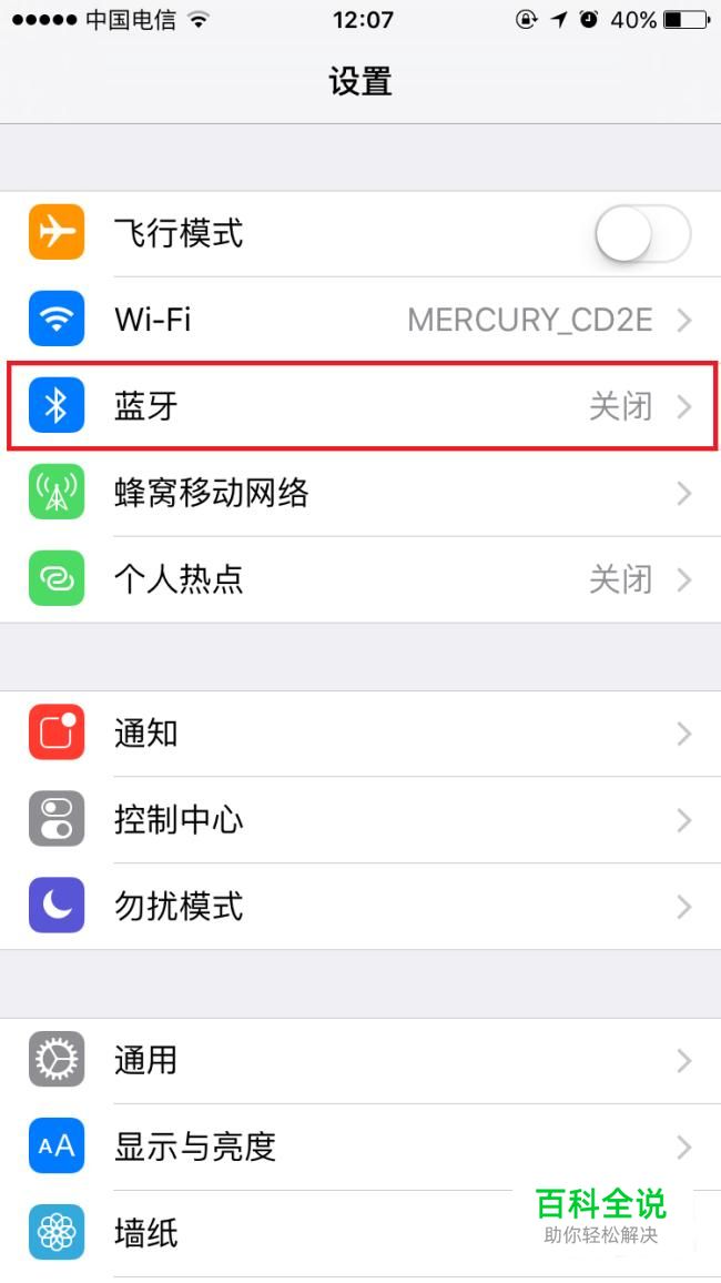 点击设置页面的“蓝牙”。