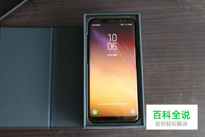 盒子一打开我们就能看到手机,三星galaxy s8和果果用的苹果有很大的不同,在它的下方并没有主功能键
