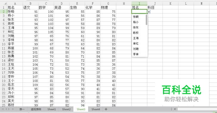 所以将姓名和科目都选择成为指定的条件之后,就会自动然的指定到带有颜色的单元格中,这里表格里面的数据就一目了然了,而且这个数据有效性在这里也是利用得非常的好了,是不是这样看数据非常的方便了。