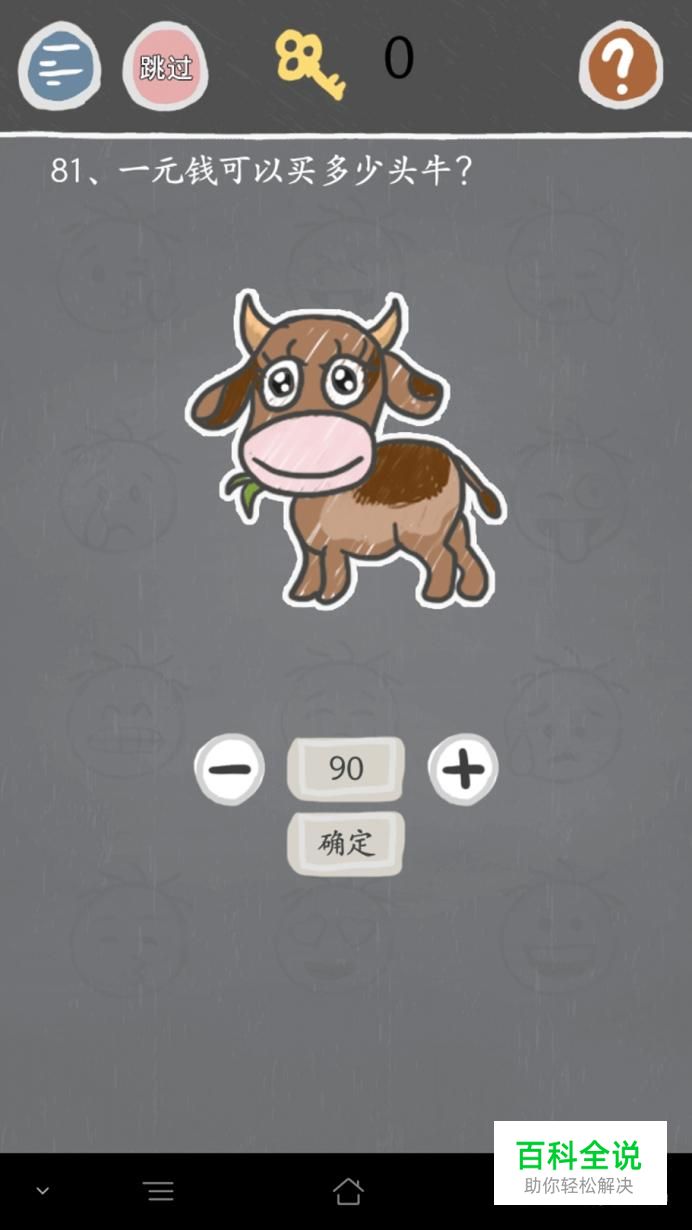 第八十一关:因为是九牛一毛,所以一块钱可以买是9*10=90头牛。