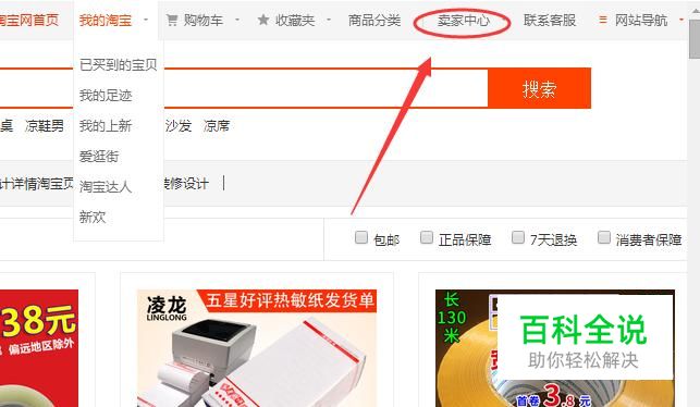首先使用电脑进入淘宝首页,点击上侧的“卖家中心”。