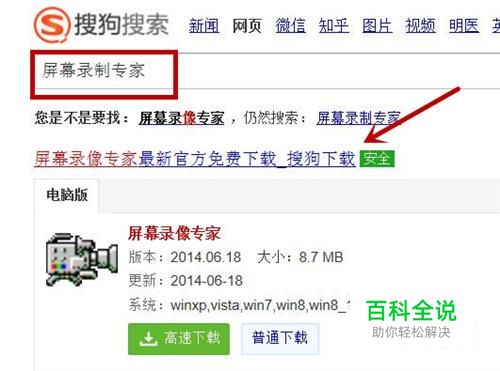 首先我们打开浏览器下载屏幕录制专家,搜索出下载地址后,点击下载并安装即可,如图所示。