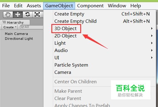在菜单里找到gameobject菜单,点击gameobject菜单在其子级菜单里找到3d object选项,如图所示: