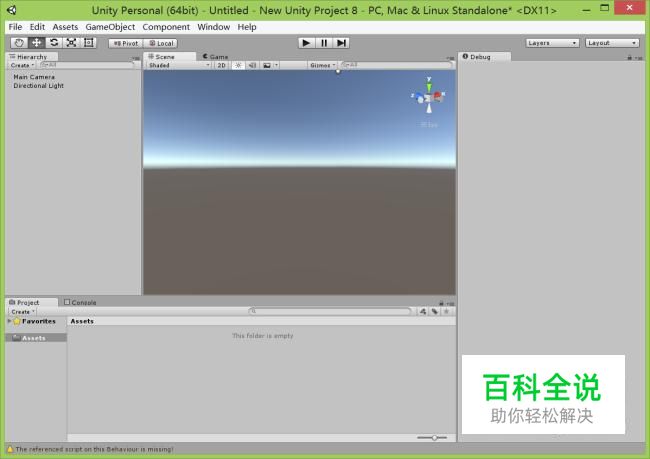 在桌面上双击unity 3d的快捷图标,打开unity 3d这款软件,进入unity 3d的操作界面,如图所示: