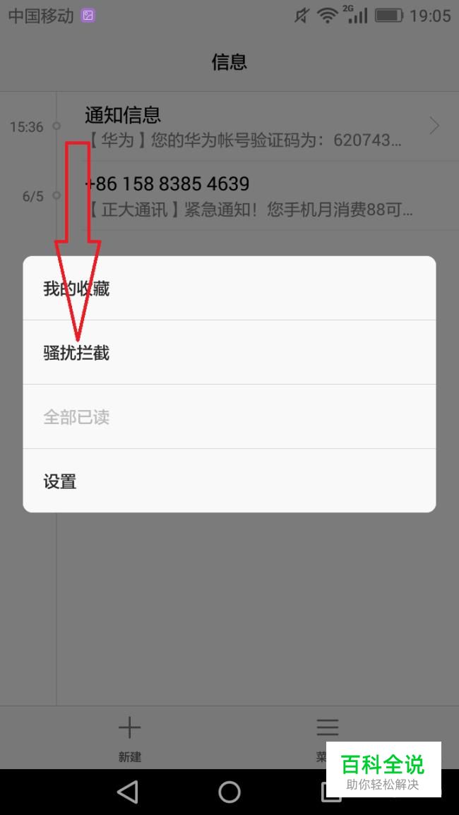 点击骚扰拦截。