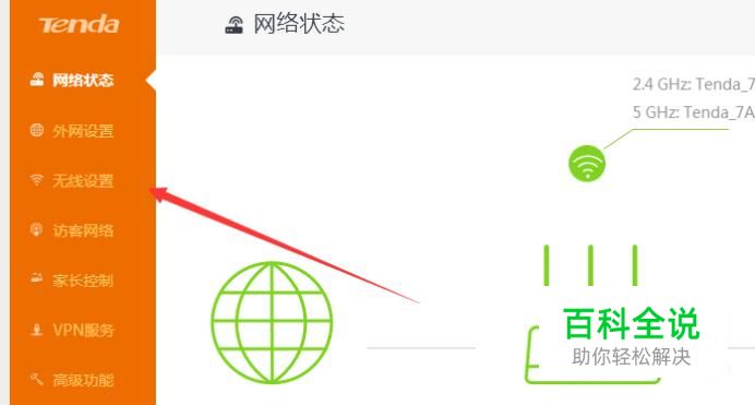 登录后台后,点击左侧栏的选项“无线设置”。