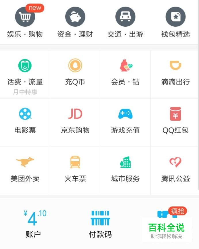 在QQ钱包中选择“会员、钻”,点击进入。