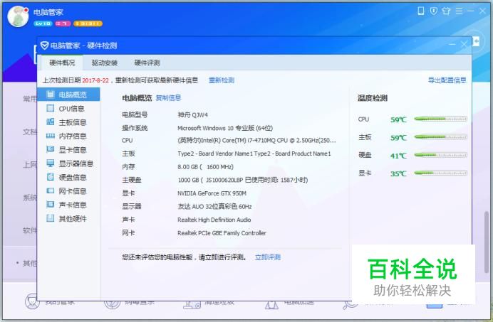 另一种方法就是通过电脑管家检测硬件,首先也同样需要安装“电脑管家”。