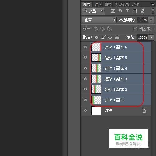 使用快捷键Ctrl+J对“形状1“图层进行复制,得到“矩形1副本“图层,再使用快捷键Ctrl+Delete对为#3edd4d