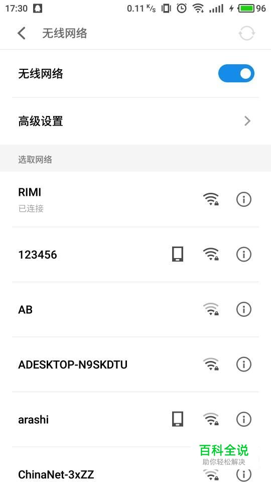 进入手机设置无线网络界面,点击想要进行密码查询的WIFI。