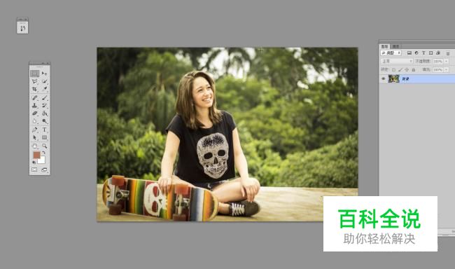 首先我们打开我们需要处理的图像,我们可以看得出来画面中的女人比较开心。
