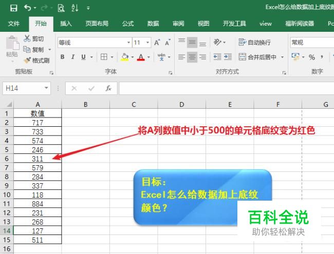 将A列当中数值小于500的单元格底纹颜色设置为红色