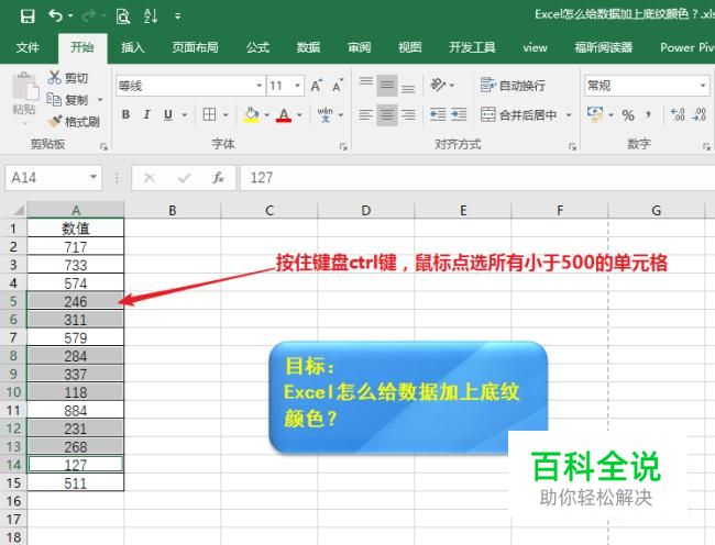 按住键盘ctrl键,鼠标点击选择A列中数值小于500的单元格