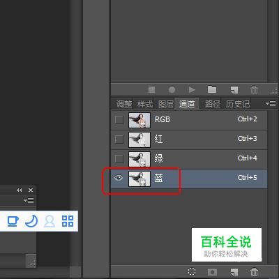 单选“蓝 副本”通道(方法:现将“蓝 副本”通道前面的眼睛都点上,在去掉“蓝”通道的即可)