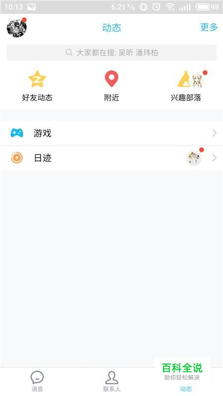 进入手机QQ主界面,在下方标签栏中选择“动态”