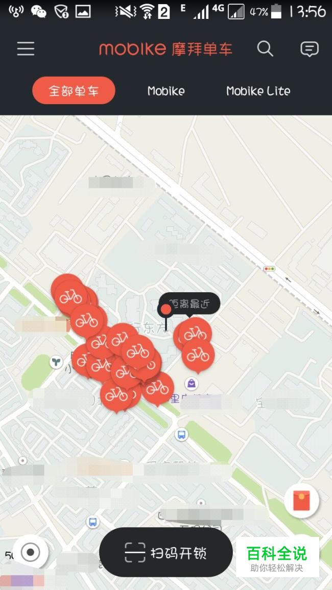 回到APP主界面,然后在地图上找到附近的一辆带有红包图标的车,那个就是红包车了,再扫码骑行10分钟后,关闭智能锁,红包会自动到账。