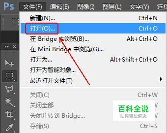 启动photoshop软件 菜单栏:"文件"-”打开“,打开一张风景照片。