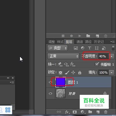 使用“油漆桶工具”在“图层1”上进行涂色并将透明度更改为40%