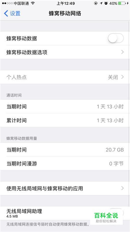 进入后将“蜂窝移动数据”右侧滑块开启,开启个人数据流量。