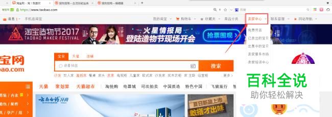 先在网页上点开淘宝,直接搜索淘宝进入淘宝首页也可,找到卖家中心,点击进去