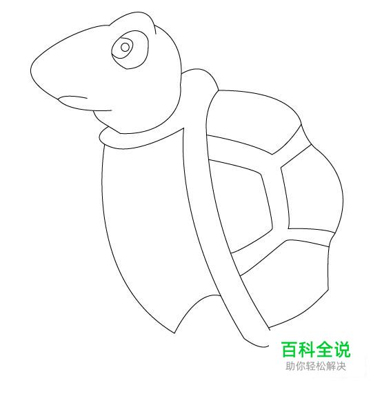 在乌龟的头上画出眼睛轮廓、脖子以及背部如图所示: