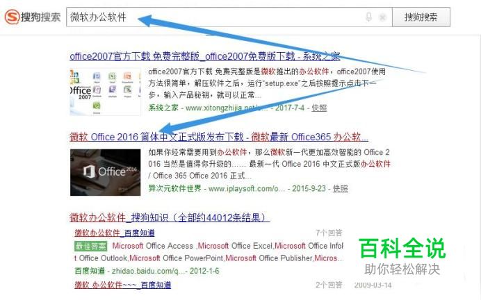 搜索微软办公软件 打开我们的浏览器,在搜索框中输入微软办公软件进行搜索。