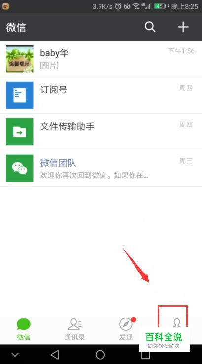 打开我们的手机微信,来到了微信首页,我们点击“我”,如图所示。
