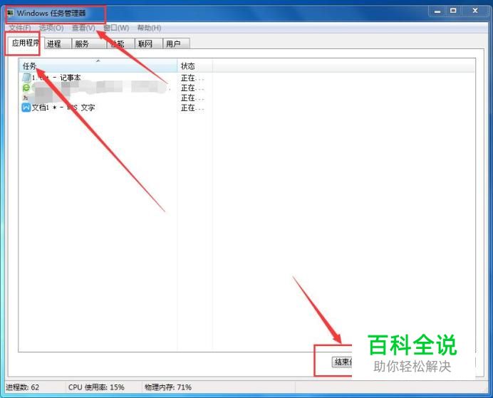 关闭进程 不要在同一时间内启动太多的进程,对于一些暂时不用的进程,应该将其关闭掉。 方法:启动【任务管理器】,切换到【进程】,在【应用进行】选项卡中就可以看到电脑中正在运行的进程有哪些了,点击【结束任务】,即可将选中的进行关闭,如下图所示: