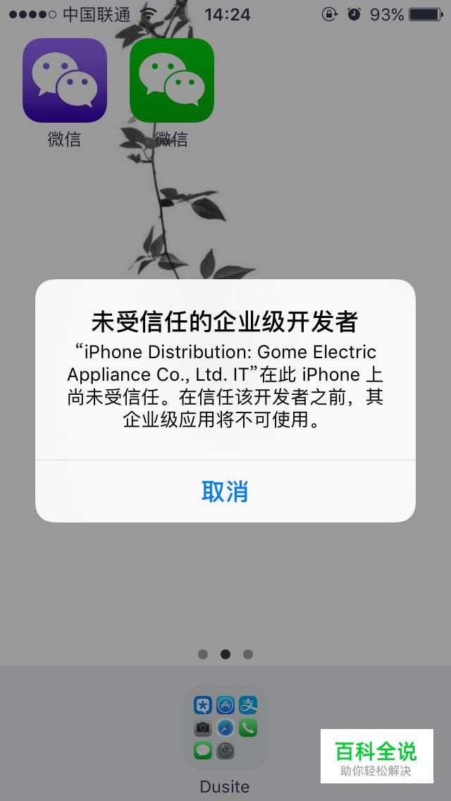 打开一些下载的App时会提醒“未受信任的企业级开发者”(以微信为例进行演示)。