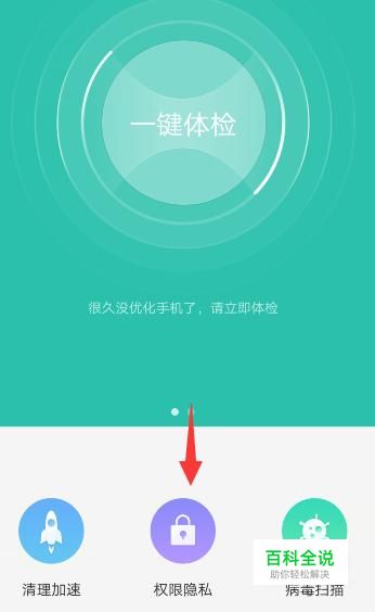 然后在手机管家中,点击下方选项中间的“权限隐私”