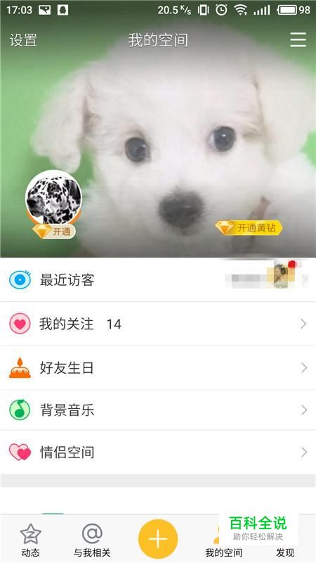 进入我的空间界面,点击“背景图片”