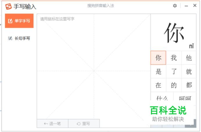 点击第二个“手写输入”。即可弹出手写输入框。