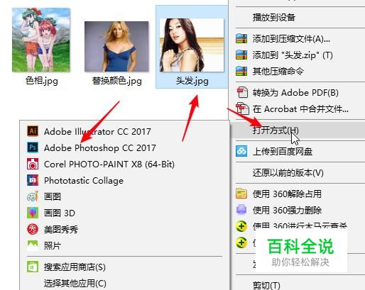 打开需要扣取图片的文件夹,选中后,鼠标右击将打开方式更改为PS。