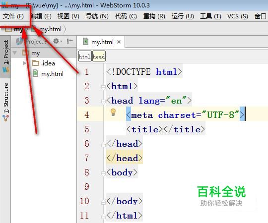 如图,点击webstorm界面左上角的“文件”菜单。