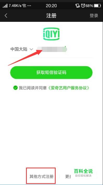 默认的注册方式为手机号注册,也可点击下方的“其他方式注册”,选择其他注册方式。