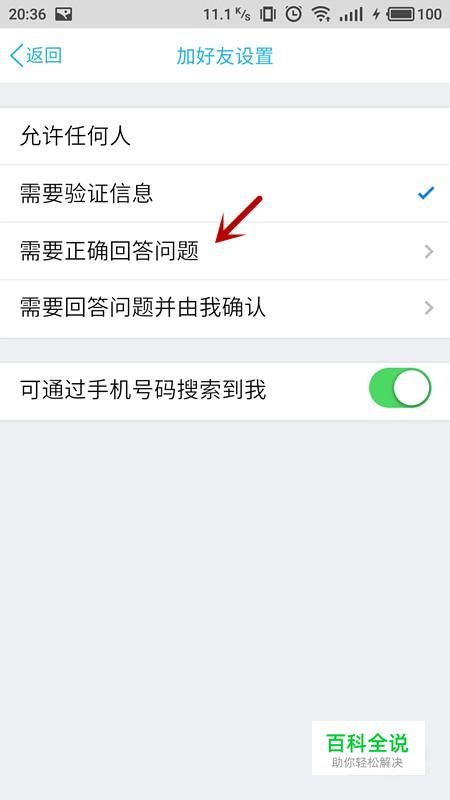 进入加好友设置界面,选择“需要正确回答问题”
