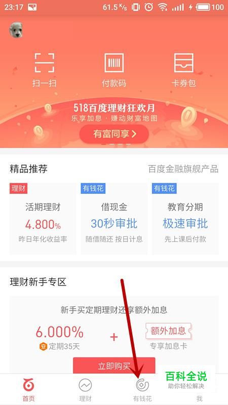 百度有钱花是百度金融旗下的消费金融品牌,是面向大众的个人消费金融权益平台,打造创新消费信贷模式,目前已经在多个产业进行探索和布局,下面教你在百度有钱申请现金贷款。