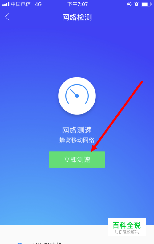 进入 网络检测 界面后,点击 立即测速 。