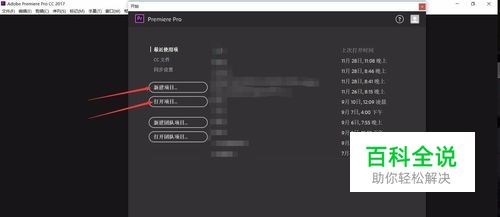 首先,我们开启Premiere软件,进入到Premiere的开始页面 ,在开始页面我们可以进行新建和开启文件,我们点击新建项目。