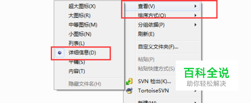 然后我们在文件夹的空白区域右击,选择查看方式为“详细信息”