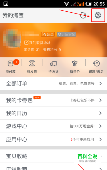 首先打开手机淘宝客户端,输入自己的淘宝账号进行登陆,然后在主界面底部点击 “ 我的淘宝 ”,再点击页面右上角的 “ 小齿轮 ”图标。 :