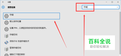 在设置页面的右上角,搜索键入存储,点击搜索按钮。