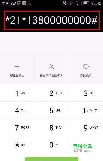 输入“*21*13800000000#”,然后点击“拨号”。