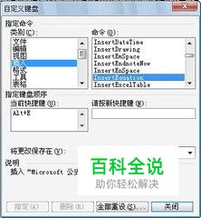 然后在“自定义”窗口中单击“命令”项,在左边单击“插入”,在右边找到“公式编辑器”。