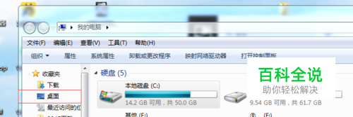 进入资源管理器后,点击左侧的桌面进入桌面。