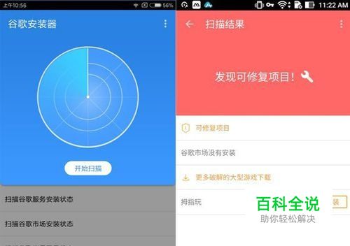 打开谷歌安装器,点击扫描,扫描后会出现修复