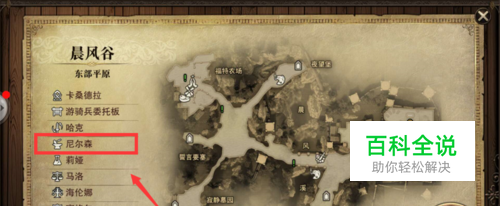 打开游戏地图,在左侧找到【尼尔森】则是游戏里的锻造大师,点击即可自动寻路。